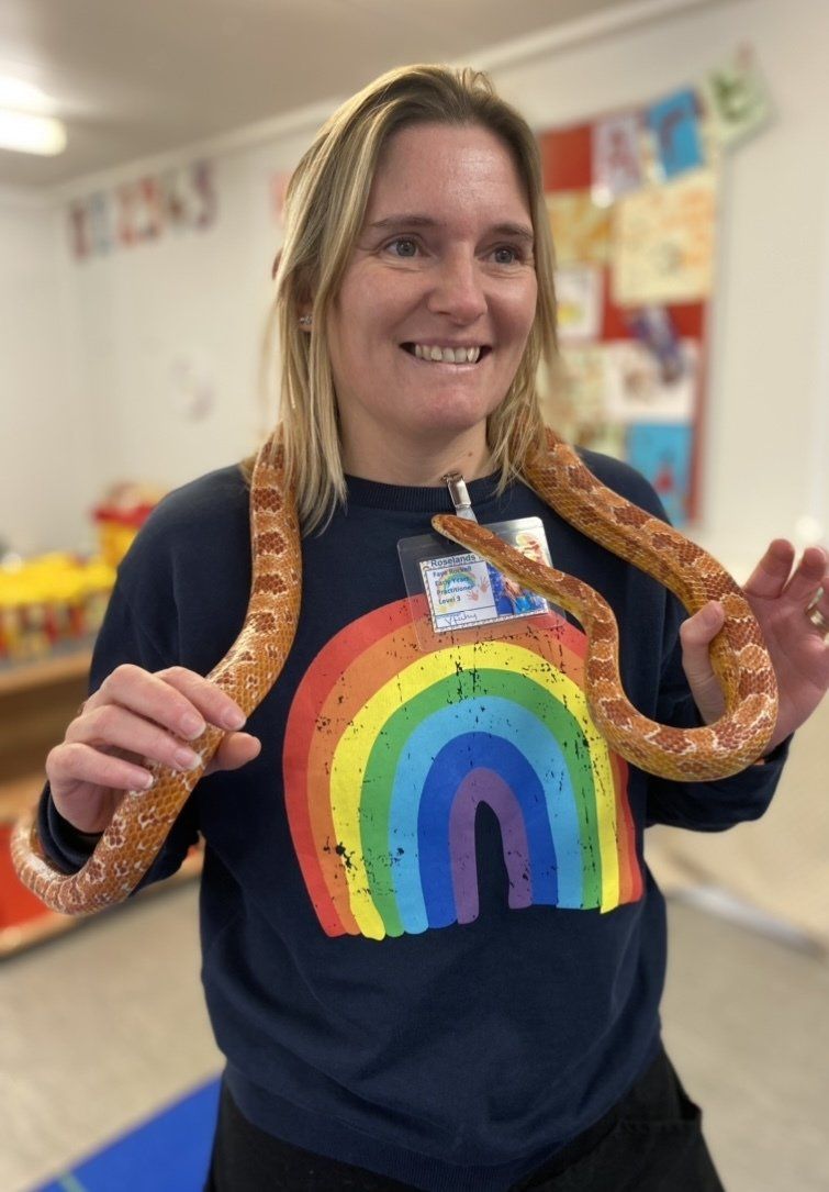 January 24th to 28th 2022 we welcomed Naomi from Animal Encounters. Naomi and her range of animals joined us each day. The children were so excited every day to come in and be able to see, touch and hold the animals. They were fantastically behaved and Naomi was able to speak to the children in small groups. We welcomed the children to bring in photos of their pets at home so we could share the photos at carpet time.